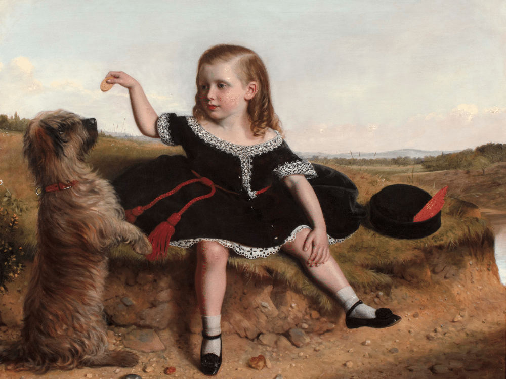 A Young Girl with a Terrier on the Moors