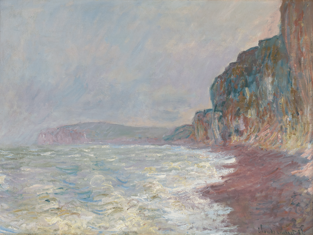 Monumental in conception yet intimate in tone, the 1882 painting Falaises, temps gris (Cliffs, Stormy Weather) reflects Monet’s hallmark pursuit to capture the shifting conditions of nature. A native of Normandy, Monet dissolves the forms into the pure sensation of standing before the sea.