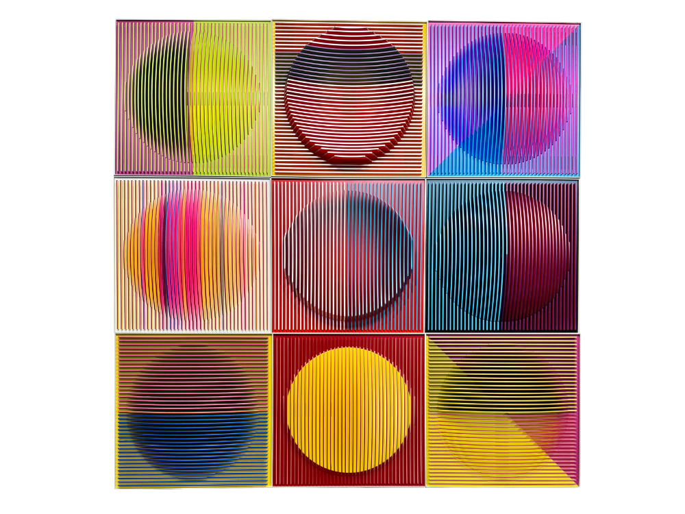 J. Margulis, Porthole 16, 2025, Plexiglass with acrylic and automotive paint, 16 x 16 in. each